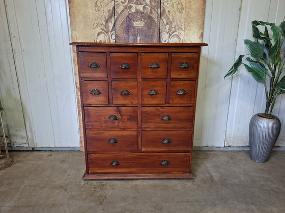 Ontdek de charme van deze robuuste teakhouten ladenkast, een prachtig voorbeeld van vakmanschap en tijdloze stijl. Met zijn mooi geleefde uitstraling voegt deze kast een vleugje karakter toe aan elke ruimte, of het nu een woonkamer, kantoor of slaapkamer is.