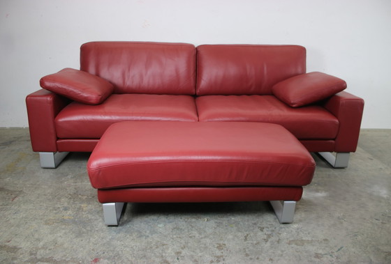 Rolf Benz Ego Couch Mit Hocker Kufen Leder Rot Dreisitzer Sofa