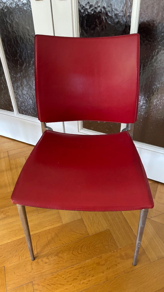ZustandGutFarbenRotMaterialLederAnzahl der Artikel4Höhe81 cmBreite45 cmTiefe44 cmSitzhöhe47 cmGebrauchsspurenKratzer, Flecken