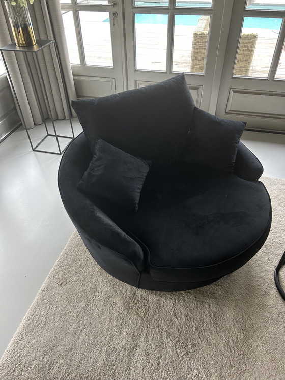 Entdecken Sie diese stilvollen runden Sessel, die Ihrem Zuhause einen Hauch von Luxus verleihen. Der weiche, samtige Bezug in tiefem Schwarz lädt zum Entspannen ein – ob mit einem guten Buch oder gemütlichen Abenden mit Freunden.