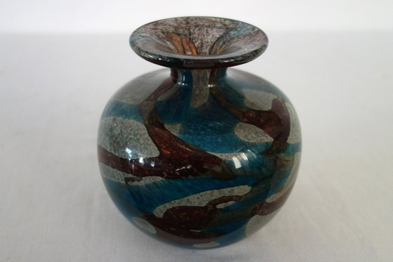 Runde Glasvase, signiert Mdina, Malta, 1970er Jahre