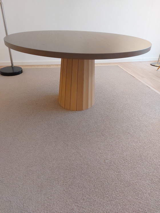 Dieser wunderschöne, unbeschädigte runde Esstisch mit 1,40 m Durchmesser vereint Eleganz und Funktionalität. Sein schlankes Design und der moderne Look machen ihn zur perfekten Ergänzung für jedes Esszimmer. Gefertigt aus hochwertigem Holz, garantiert er eine langlebige und robuste Konstruktion. Der dezente Grauton der Tischplatte bildet einen schönen Kontrast zum warmen Braunton des Gestells und schafft so ein harmonisches Gesamtbild.