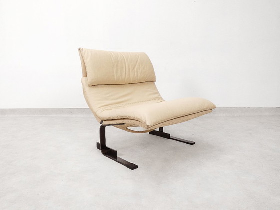Eleganter Saporiti Onda Sessel, ein italienischer Designklassiker (1970er Jahre) von Giovanni Offredi, in cremefarbenem Leder.