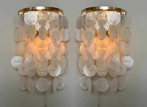 Satz von 2 Capiz Shell Wandleuchten Perle Opaline Gold Frame