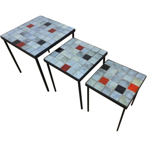 Satz von 3 keramischen Nisttischen von Mado Jolain, 1960
