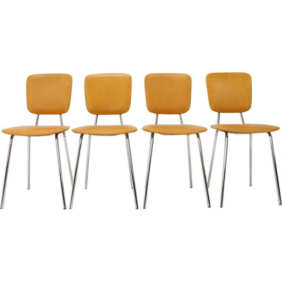 Satz von 4 Esszimmerstühlen aus Chrom und Kunstleder, Tschechoslowakei 1970er Jahre