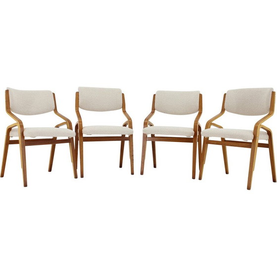 Satz von 4 Stühlen aus Bugholz und Bouclé-Stoff von Ludvík Volák für Dřevopodnik Holešov, Tschechoslowakei 1970er Jahre