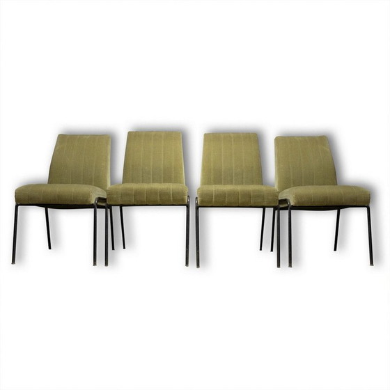 Satz von 4 Stühlen aus grünem Stoff, Wildleder 1960