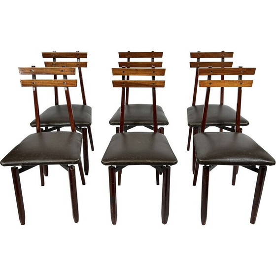 Satz von 6 italienischen Holzstühlen aus der Mitte des Jahrhunderts, 1950er Jahre