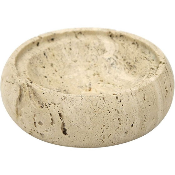 Kreisförmige Struktur mit abgerundeter Kante aus bearbeitetem Travertin.