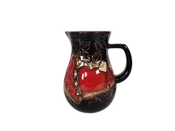 Entdecken Sie den Charme der 70er Jahre mit dieser wunderschönen Scheurich Keramik-Ausgusskanne, Modell 419-18. Dieses Stück mit seinem lebendigen Fruchtmotiv verleiht jedem Raum einen Hauch von Retro-Eleganz. Die satten Rot- und Brauntöne machen dieses Deko-Objekt zu einem echten Hingucker, der Stil und Geschichte vereint.