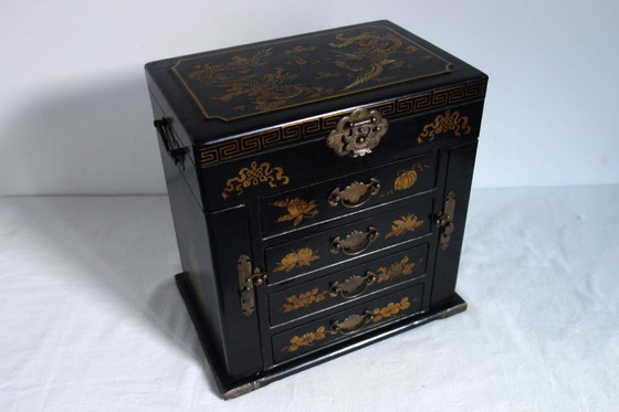 Fein verzierter chinesischer Schmuckschrank aus Holz aus der Mitte des 20. Jahrhunderts.