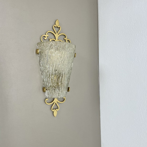 Schöne 41Cm Messing und Eis Glas Wandleuchte Sconce Kalmar Style, Deutschland 1970S