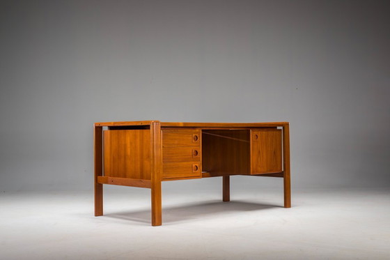 Ein ikonischer Schreibtisch, der in den 1960er Jahren von H.P. Hansen hergestellt wurde. Dieses schöne Stück ist ein Beispiel für dänische Handwerkskunst und kombiniert eine leichte Form, zeitloses Aussehen und maximale Funktionalität. Die doppelseitige Ausführung bietet Vielseitigkeit und ermöglicht einzigartige Platzierungsmöglichkeiten, um jedem Raum Charakter zu verleihen.