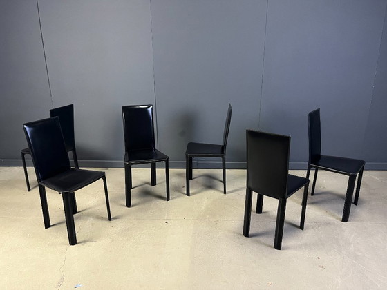 Schwarze Leder-Esszimmerstühle von De Couro Brazil, 1980er Jahre - 6er-Set