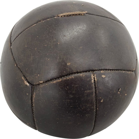 Original Vintage schwere Leder Trainingsball mit schöner Patina. Der Ball wurde in der ehemaligen Tschechoslowakei in den 1930er Jahren aus echtem Leder handgenäht. Er kann als originelles Wohnaccessoire oder als stilvolle Trainingshilfe verwendet werden. Der Lederbezug ist im Originalzustand, er wurde gereinigt und mit einem ökologischen Lederimprägniermittel behandelt.
