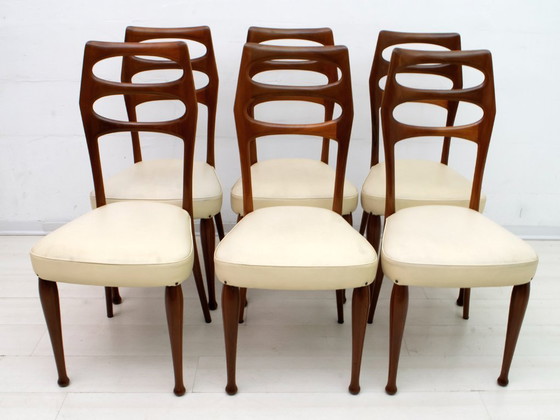 Sechs Vittorio Dassi Mid-Century Modern Italienische Mahagoni-Esszimmerstühle, 1950er Jahre