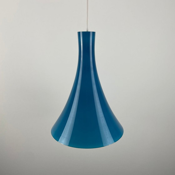 Wir präsentieren ein atemberaubendes Beispiel für modernes Design aus der Mitte des Jahrhunderts von dem bekannten deutschen Designer Wilhelm Braun-Feldweg für Peill & Putzler. Dieses außergewöhnliche Modell, bekannt als "Tokyo", wurde um 1960 produziert und zeichnet sich durch seine seltene und elegante Form aus, die nur selten zu sehen ist. Noch einzigartiger ist die leuchtend blaue Farbe, eine Rarität in der Kollektion von Peill & Putzler, die diese Lampe zu einem echten Sammlerstück macht! Die Leuchte "Tokyo" ist mit Präzision gefertigt und strahlt ein weiches, warmes Licht aus, das in jedem Raum eine einladende Atmosphäre schafft. Peill & Putzler, bekannt für seine hochwertigen Glasdesigns, ist seit Mitte des 20. Jahrhunderts führend im Bereich der Beleuchtung. Jahrhunderts führend auf dem Gebiet der Beleuchtung. Ihre Stücke, wie diese Leuchte, vereinen sowohl Funktionalität als auch künstlerische Handwerkskunst. ABMESSUNGEN Höhe: 35cm Durchmesser: 27cm Kabellänge: 50cm PRODUKT DETAILS Zustand: Gut - am unteren Rand befinden sich Chips, siehe Fotos. Material: Opalglas Fassung: E27 Inklusive Glühbirne und Deckensockel Neue Fassung und Kabel Herstellungszeitraum: 1960 Herkunftsland: Deutschland Modell: Tokyo Hersteller: Peill & Putzler