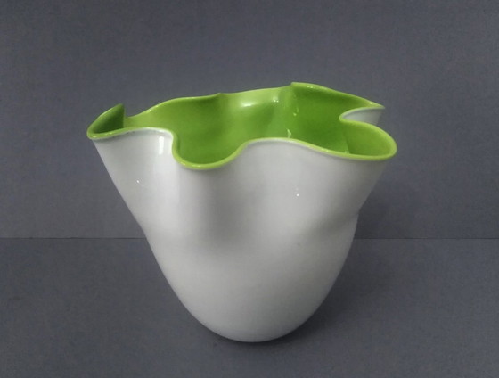 Seltene signierte, größte Venini "Fazoletto" grün & weiß Murano Vase von Fulvio Bianconi 1980s--21x17cm 1100 Gramm, markiert, minimale Gebrauchsspuren in perfektem Zustand--Versand in der EU - 35€ weltweit - 55€ VERSAND mit Priority Express und Einschreiben Als privater Verkäufer, werde ich für Schäden an Ihrer Ware, die durch mangelhafte Verpackung verursacht werden können, haften. Ich hafte nicht für Schäden, die durch das Verschulden des Spediteurs entstanden sind, oder für verloren gegangene Pakete usw. Nach den in der Europäischen Union geltenden Rechtsvorschriften liegt die Verantwortung für die Lieferung beim Käufer.