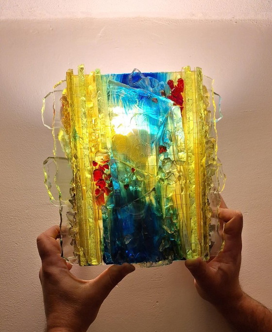 Seltene Wandlampe „Chartres“ – Willem van Oyen – Buntglaskunstwerk
