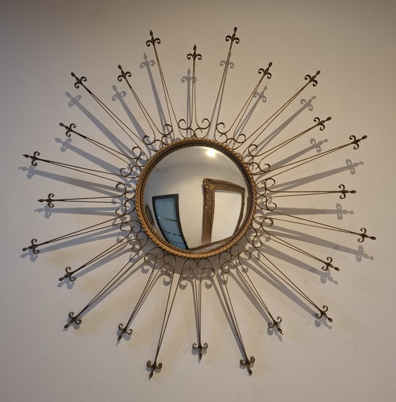 Hallo, hier ist ein weiteres großartiges Modell in unserer Kollektion: ein Sonnenschliffspiegel aus den 1950er Jahren, eine äußerst seltene Ausgabe der französischen Firma CHATY VALLAURIS A.M.