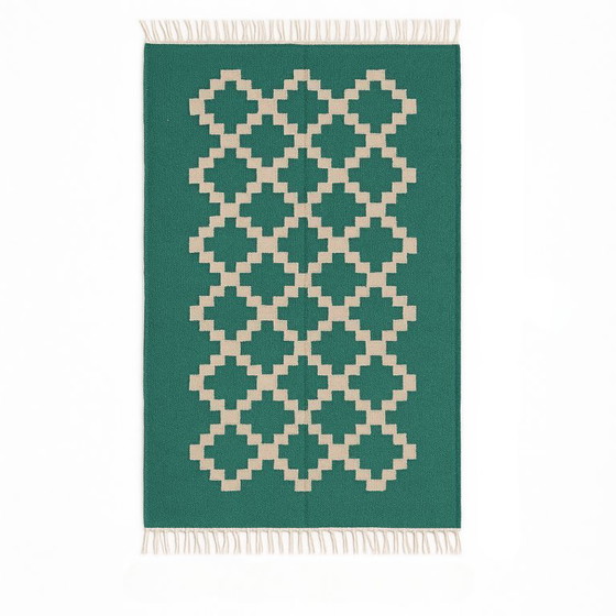 Senon Kilim Läufer 90 × 160 cm - Handgefertigt in Ägypten - Grüner Diamant, Flachgewebe