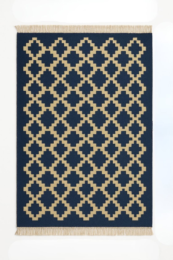 Senon-Kilim-Teppich 160 × 230 cm - Handgefertigt in Ägypten - Blauer Diamant, Flachgewebe