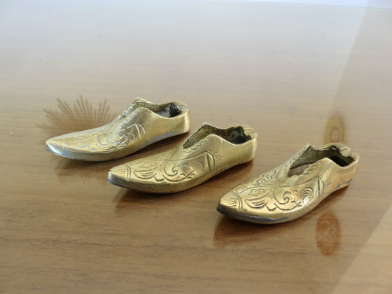 Serie von 3 Aschenbechern aus Messing in Babouche-Form
