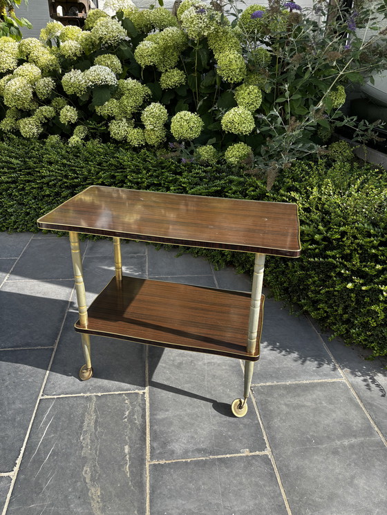 Wir präsentieren einen klassischen Servierwagen, eine zeitlose Ergänzung für jedes anspruchsvolle Zuhause. Dieser elegante Servierwagen verbindet Funktionalität mit Vintage-Charme und eignet sich perfekt, um Gäste zu bewirten und Ihrer Einrichtung einen Hauch von Raffinesse zu verleihen. Sein schlankes Design und seine praktischen Funktionen machen ihn nicht nur zu einem stilvollen, sondern auch zu einem vielseitigen Stück.