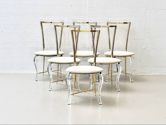 Set: 6 Stühle aus Acrylglas mit Messingdetails von Vereinigte Werkstätten, 1980er Jahre