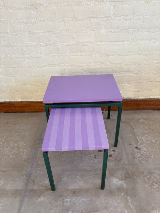 Set aus 2 Beistelltischen / Pflanzentischen, lila gestreift