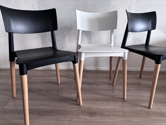 - Die Stühle sind aus hochwertigem Kunststoff und Holz gefertigt und garantieren so Langlebigkeit.
