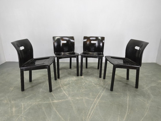 Vier Esszimmerstühle, entworfen von Anna Castelli Ferrieri und hergestellt von Kartell, Italien, in den 1980er-Jahren.