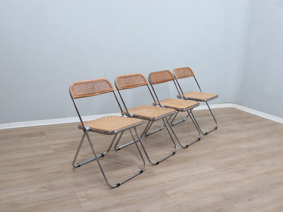 Dieses außergewöhnliche Set aus vier Plia-Stühlen, entworfen von Giancarlo Piretti für Castelli, stellt eine seltene und begehrte Weiterentwicklung eines Designklassikers der 1970er-Jahre dar.