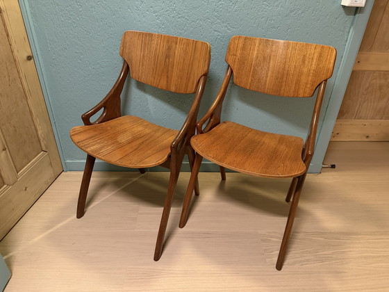 Zeitlose Eleganz von Arne Hovmand. Diese beiden Esszimmerstühle des dänischen Designers aus den 1960er-Jahren befinden sich in exzellentem Zustand. Sie weisen nur minimale, typische Gebrauchsspuren auf, lediglich an ein, zwei Stellen sind leichte Lackverfärbungen oder Kratzer zu erkennen.