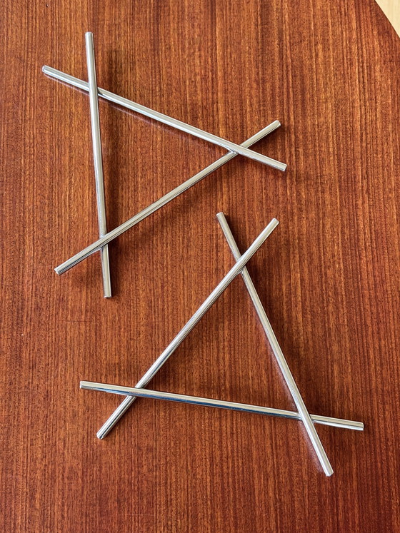 Elegantes 2er-Set Edelstahl-Untersetzer im minimalistischen und zeitlosen Design. Die glänzende Chromoptik passt perfekt zu aktuellen Einrichtungstrends und verleiht ihnen eine moderne, fast skulpturale Anmutung.