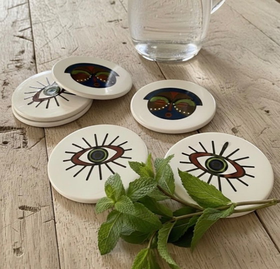 Set mit 6 Keramikuntersetzern.