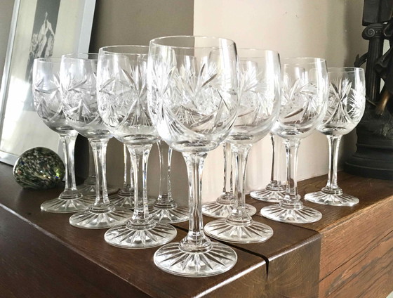 Set Von 12 Böhmisch Geschliffenen Kristallweingläsern