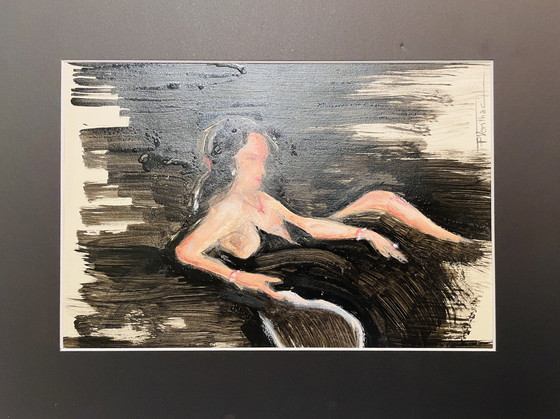 Signiertes und gerahmtes Gemälde Pastell und Tusche Porträt Frau "Diamant"