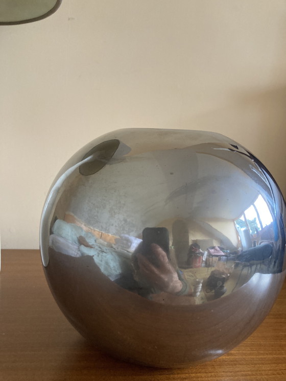 Diese elegante, silberfarbene Vase wurde von Jan des Bouvrie entworfen. Ihre moderne, reflektierende Oberfläche verleiht jedem Raum einen Hauch von Eleganz. Diese Vase eignet sich perfekt für die Präsentation von Blumen oder als alleinstehendes Dekorationsstück und verkörpert mit ihrer glatten, abgerundeten Form ein zeitgenössisches Design.