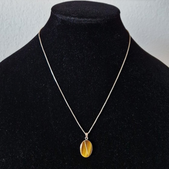 Silberner Anhänger mit Tigerauge und passender Halskette