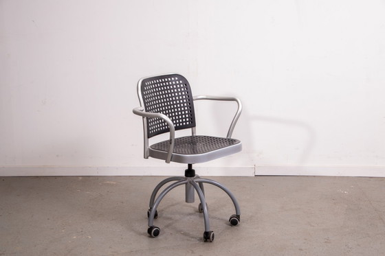 Silberner Bürostuhl, entworfen von Vico Magistretti für De Padova.