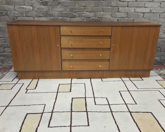 Dieses Sideboard ist perfekt für alle, die den Charme von Retro-Möbeln schätzen und gleichzeitig Wert auf Funktionalität legen. Zögern Sie nicht, es in Ihr Wohn- oder Esszimmer zu integrieren und ihm einen einzigartigen und eleganten Stil zu verleihen.