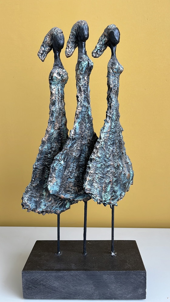 Die Skulptur stellt eine moderne Interpretation der „Drei Grazien“ dar. Die Drei Grazien sind Figuren aus der griechischen Mythologie, bekannt als die Töchter des Zeus, die Schönheit, Charme und Kreativität symbolisieren.