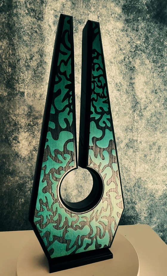 Diese Skulptur erzählt von Gegensätzen, die sich nicht bekämpfen, sondern ergänzen. Die vertikale Spaltung steht für Dualität – Licht und Schatten, Bewegung und Ruhe, Innen und Außen. Der Kreis dazwischen ist das Symbol für Verbindung, das Auge der Balance.