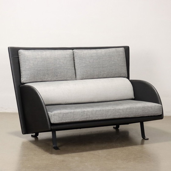 Zweisitzer-Sofa, Gestell mit Kunstleder bezogen, Schaumstoffkissen mit Samtbezug. Restauriert. Code: MOSEDI0237120