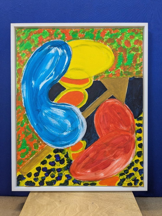 Dieses Werk ist ein ORIGINAL-Acrylgemälde. Das Werk ist inspiriert von weichen Einrichtungsgegenständen und Tiermotiven in der Inneneinrichtung. Diese Formen wurden mit lebhaften Acrylfarben dargestellt.