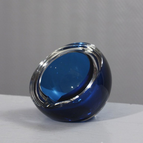 Wunderschöner Sommerso-Kristallaschenbecher aus Saint Louis, Frankreich, zweite Hälfte des 20. Jahrhunderts.