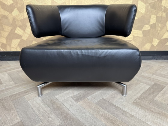 Sehr seltener Koinor Sessel im Würfeldesign. Ausgestattet mit unberührtem schwarzem geschmeidigem Leder. Keine Kratzer oder Mängel am Leder. Die Füße aus rostfreiem Stahl sind in der Höhe verstellbar. Es ist daher eine Zierde in Ihrem Wohnzimmer, Küche oder Büro. Abmessungen; Länge und Breite 80 cm. Gesamthöhe 70 cm. Sitzhöhe 40 cm.