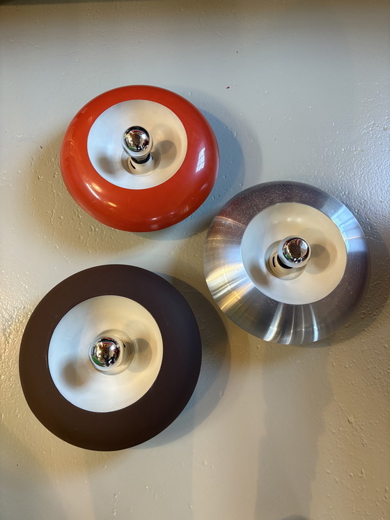 Sehr coole Vintage-Wand- oder Deckenleuchten der niederländischen Marke Nieuwenhuis. Space-Age-Stil, extrem selten.